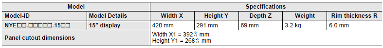 The following table provides specification details on dimensions and weights for the Panel PC with 15" display.
