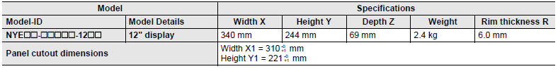 The following table provides specification details on dimensions and weights for the Panel PC with 12" display.