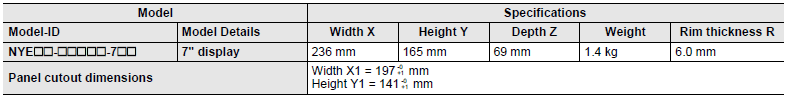 The following table provides specification details on dimensions and weights for the Panel PC with 7" display.