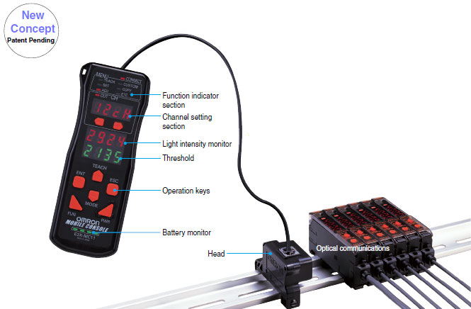 The E3X-DA-N is the first series of Fiber Sensors to use an Auto Power Control (APC) circuit. This achieves strict detection by eliminating fluctuation in the digital value and is ideal for subtle detection such as stable detection of liquidcrystal glass.